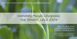 Warsztaty Muzyki Liturgicznej, które odbyły się w dniach 16-18 III 2018, pod hasłem „Nie śmierć, lecz życie”. Hasło nawiązuje bezpośrednio do słów Ewangelii z 18 III 2018, ale jednocześnie dotyka głębi naszych dusz, naszego życia, w którym tyle już obumarło… Zapisy do 10 marca!Publié par S Judyta Lisek sur mercredi 28 février 2018